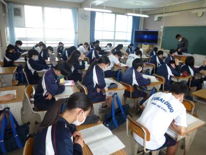 36期生は,1年次から朝の時間に読書の取り組みを続けています。読書の好きな人はもちろんですが,普段読書に親しむことが少ない人のためにも,朗読とともに様々なジャンルの小説やエッセイを読んでいます。落ち着いた環境の中で,朝の読書の取り組みを行うことができています。3年間続けることができれば,大きな財産になるのではないでしょうか。