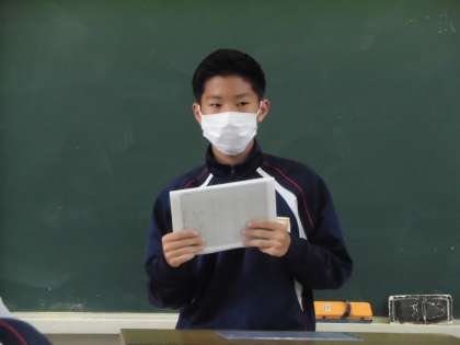 4組の国語の授業の様子です。俳句の発表ということでドキドキしている生徒も多かったです。普段使っている言葉を17音にまとめるというのは貴重な機会だったと思います。今回は番外編あり。全員が終わってから「もう一句詠みたい」というユーモアな提案で…照れながらも、場が和んで大盛り上がりしました。