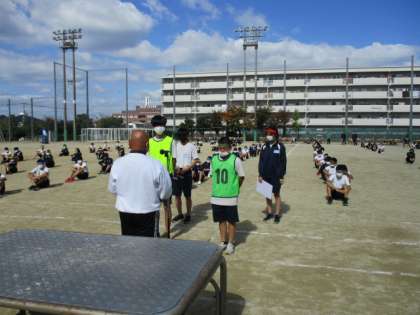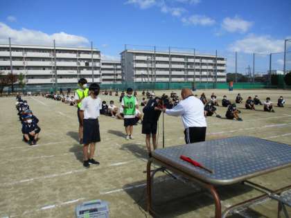 表彰式・学校長講評(競技の部 優勝4組 準優勝1組・3組)