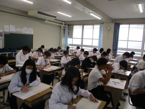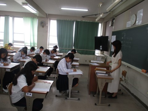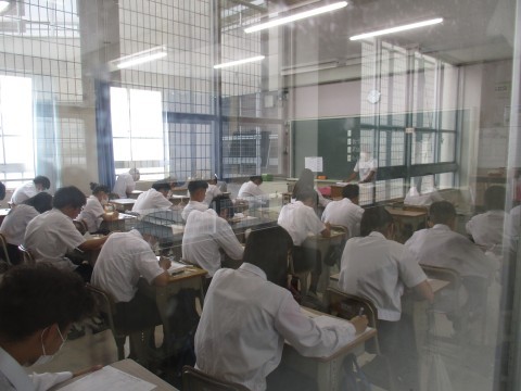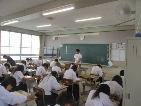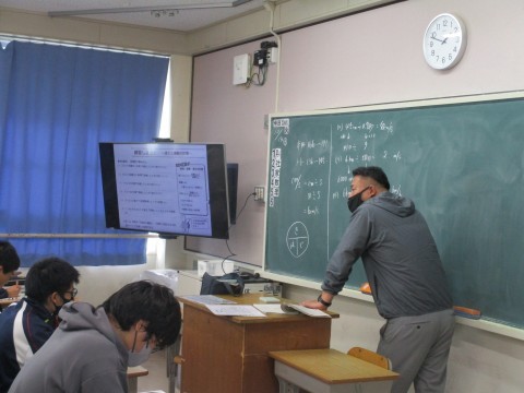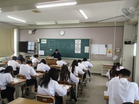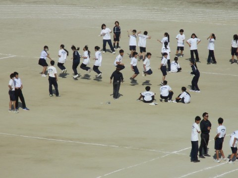 写真は1年生の体育大会の練習と3年生の理科の授業風景です。