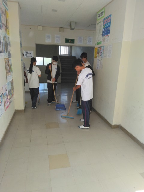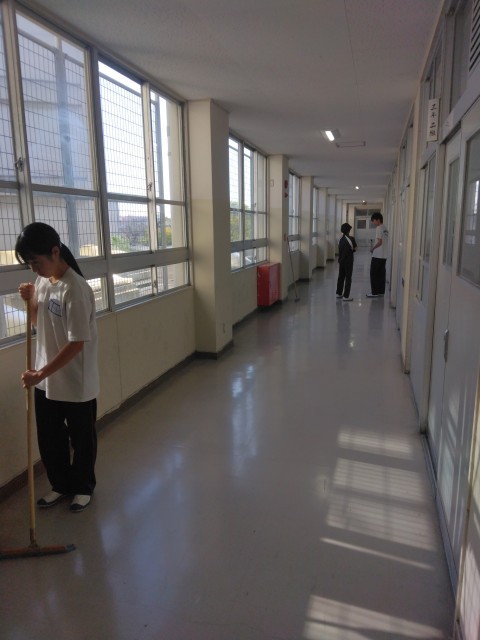今日は、朝から3年生の有志の生徒による廊下そうじが行われました。
