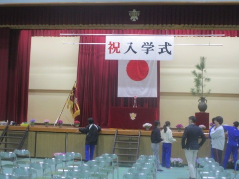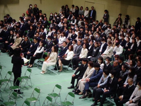 入学式の様子です。新入生代表が元気あふれる立派な宣誓を行いました。その後担任及び職員紹介が行われました。