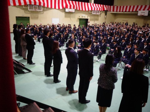 本日は第63回入学式です。晴天と暖かな気温に恵まれ新しい制服に身を包んだ新入生が登校してきました。正門前の桜の木はまだ満開には至りませんでしたが皆さんが登校する晴れやかで清々しい表情がまるで満開の桜のようでした。