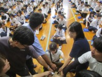 昨日,朝早くから理科の実験室が明るく,教室をのぞいてみると