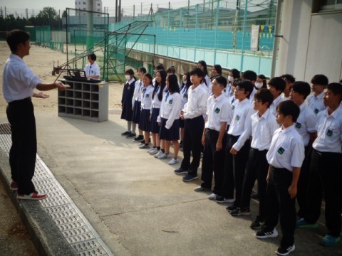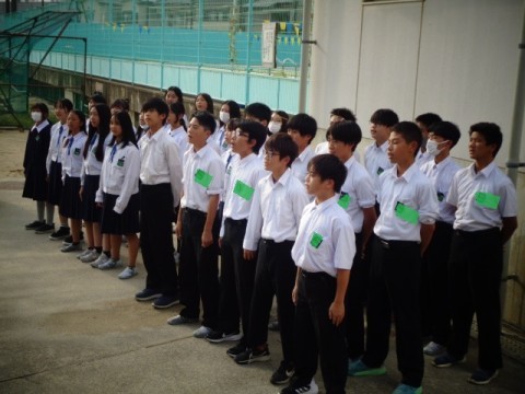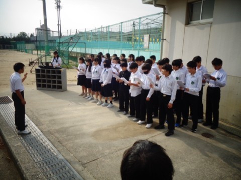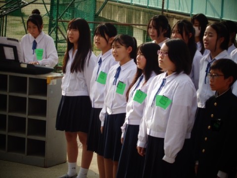 この日の合唱練習では,クラス同士で歌を披露する場面がありました。2年生は1年生の歌を,1年生は2年生の歌を見てお互い健闘をたたえあいました。