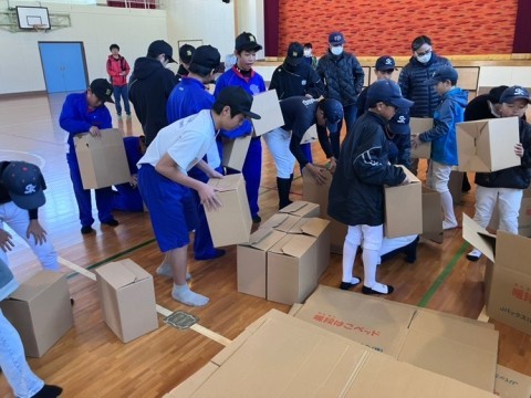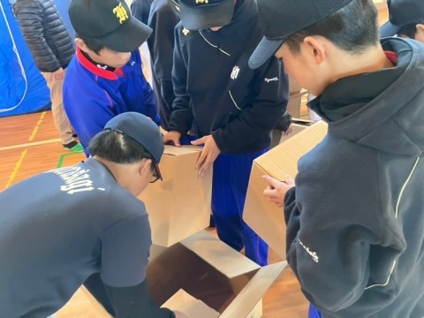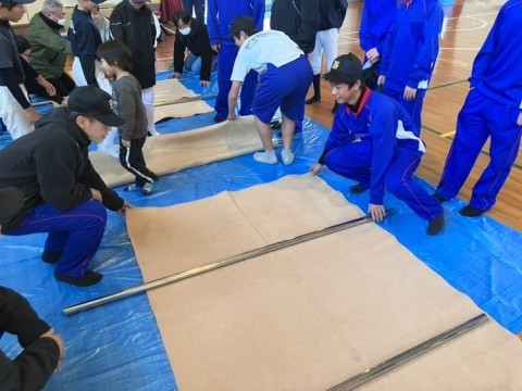 応急担架とダンボールベッド、どちらも「身近なものを活かして命を守る」という防災の基本を体感できる貴重な学びとなりました。今回の経験を、いざという時に生かせるよう、日頃から意識しておくことの大切さを感じる時間となりました。