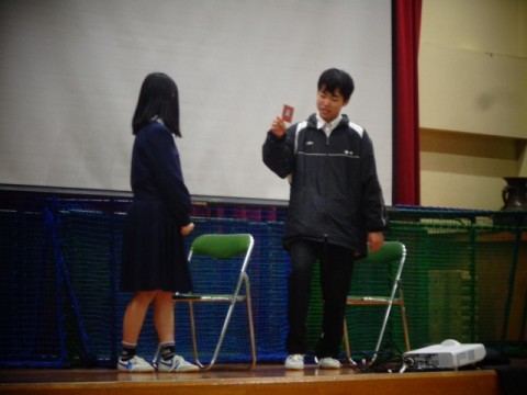 また,この日は図書委員のみなさんが図書室利用にまつわる素敵な寸劇を披露してくれました。給食が始まって以来,なかなか図書室利用の機会が減りましたが本を借りるとなんと図書室限定のカードがゲットできます。中にはレアカードもあるようです。もうこれは図書室に行くしかありません!図書室へ行こう!