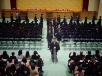 卒業証書授与式では,担任の先生が一人一人の名前を読み上げていきます。各クラスの合唱曲が館内に流れていました。
