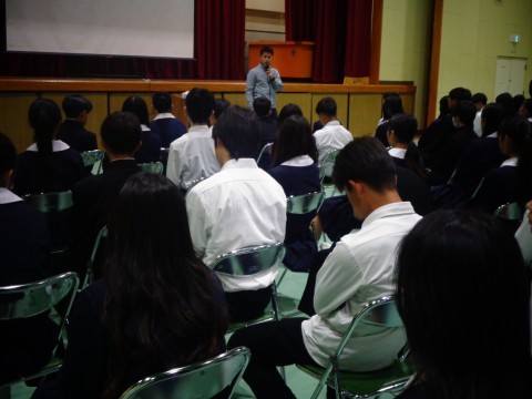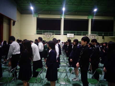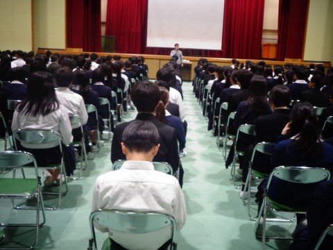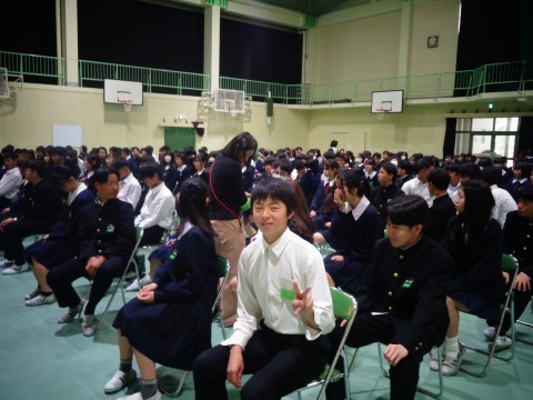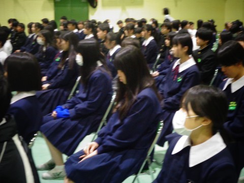 3年生は最初の学年集会です。学年主任の先生,進路担当先生,生徒指導,係,教科からの連絡がありました。皆さんには周りから「応援される人」になりましょう。態度をしっかり頑張れる,勇気100%でチームとして乗り切れる集団になってほしいと思います!