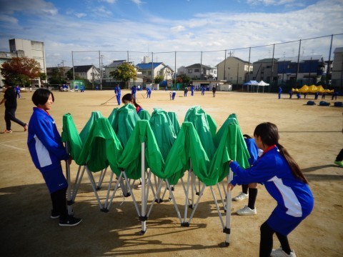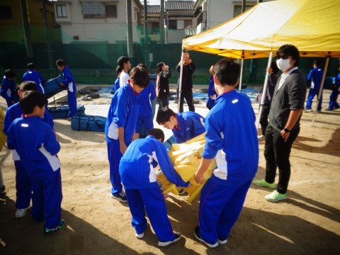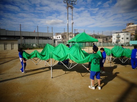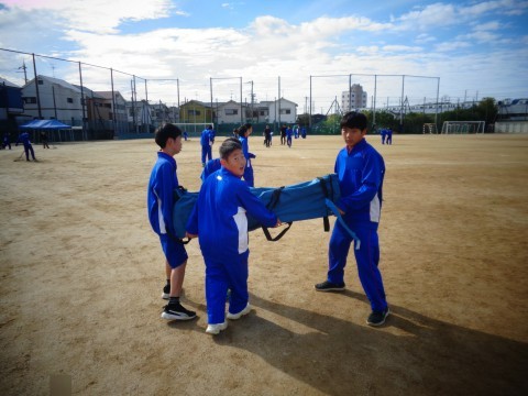 東百舌鳥小学校区の地域の防災訓練に本校のサッカー部が参加しました!!