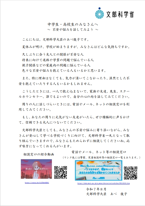 文部科学大臣から中学生のみなさまへ