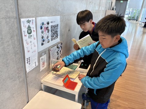 伝匠館オープン前に並ぶ生徒の様子です