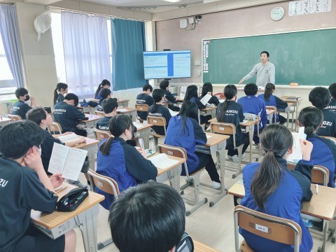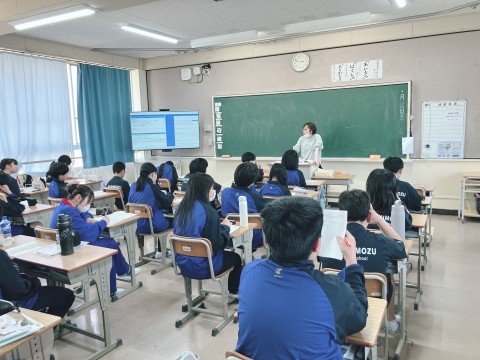 はじめに学年主任より、「将来、官僚のように社会を支えるリーダーとなるために、日頃の振る舞いや身だしなみを大切にしてほしい」とのメッセージがあり、生徒たちは真剣な表情で耳を傾けていました。