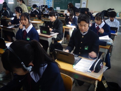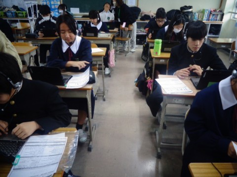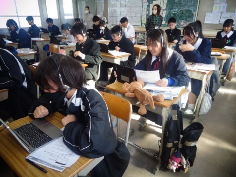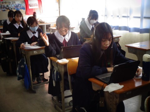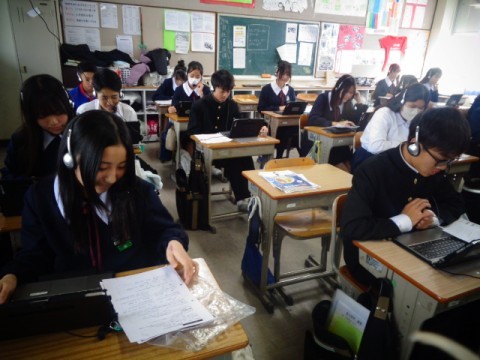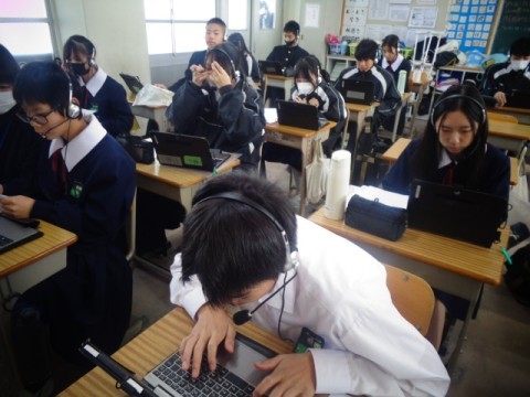 本日2限,4限,5限はオンライン英会話でした。今日の会話のテーマは「修学旅行のプランをたてよう!」です。先生たちと話す25分間は英会話に苦戦しながらも生き生きとした表情で取り組んでいました。会話のレベルも習熟度が自分で選べます。前回はベーシックを選択していた人もスタンダード,アドバンスに挑戦することができます。明日は3,4,7組があります。