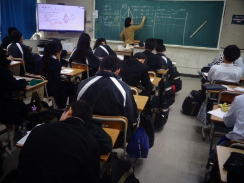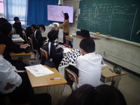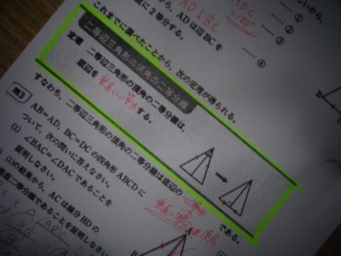 本日の数学の授業では,二等辺三角形の合同条件について学習していました。証明の問題も期末テストに出題されていました。数学で頭を鍛えて論理的思考力を養いましょう。