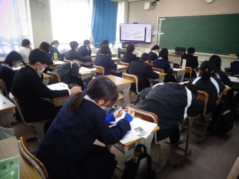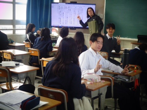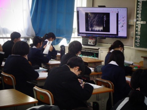 本日の国語の授業では,「黄鶴桜にて孟浩然の広陵に之くを送る」をテーマに杜甫,李白,孟浩然の漢文の読み取りに取り組んでいました。