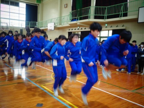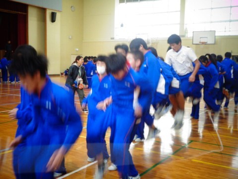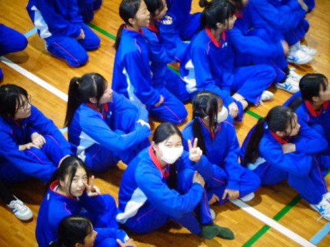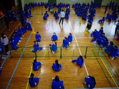 クラスマッチ閉会式の様子です。この日は2限から4限まで体育館でシッティングバレーボールと大繩跳びがありました。この日素晴らしかったのは,ネガティブな発言や文句が一切なかったことです。体育委員の皆が考えてくれた企画をみんなで楽しむ。そんな素晴らしい一面を持つ61期生のみなさんです。今後も皆さんの良さをたくさんの行事で発揮してください。