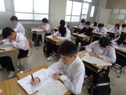 本日最終科目の国語のテストの様子です。皆チャイムがなるギリギリまで問題に取り組んでいました。明日の科目は、数学と音楽です。