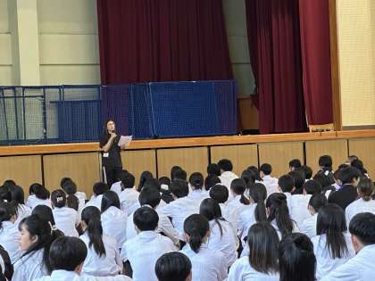 先日の全校集会では、進路担当の先生のお話の後は、生徒会から6月から始まる体操服登校に向けて正しい制服着用の在り方に関するお話がありました。また、今週から6人の教育実習の先生が本校に来てくれました。3週間よろしくお願いします。