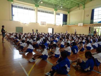 本日の学年集会では、クラスマッチの表彰と夏休みの過ごし方について各先生からのお話がありました。