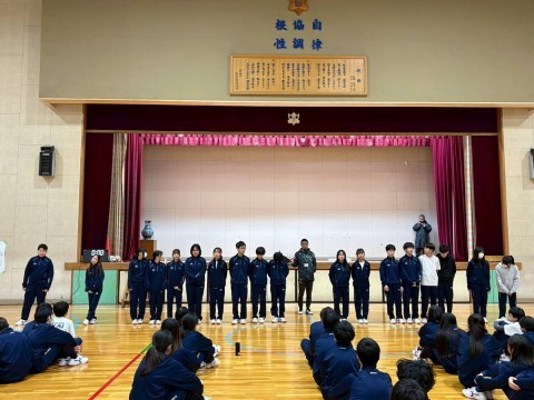 4月より本校に入学予定の子どもたちが集まり、名札の受け渡しや、中学校生活についてのお話をしました。