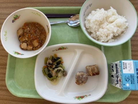 本日の給食 公開日 2025/09/19 更新日 2025/09/19 学校のできごと 本日の献立は、焼きシューマイ、小松菜のソテー、麻婆豆腐、ごはんです。焼きシューマイが人気で、余った分を大勢でじゃんけんしていました。