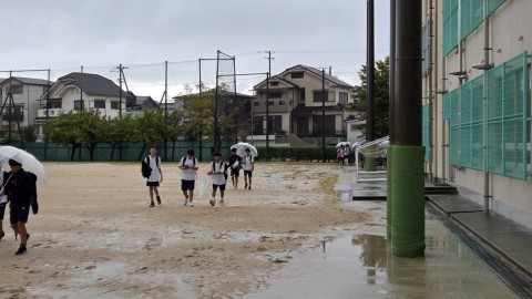 おはようございます。久しぶりに、本降りの雨の中での登校となりました。気温は穏やかでいいのですが、強めの雨で濡れてしまった人もいるのでは・・・そして、本校は校舎に入るために、一部グラウンドを通過しないといけません。足元がぬかるんだ中での登校・・・あまり気持ちの良いものではありませんが、そんな中でも、やっぱり気持ちの良い「おはようございます!」の声が響きます。