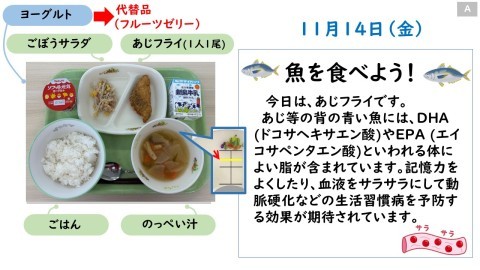 今日の献立は、ごぼうサラダ、あじフライ、のっぺい汁、ヨーグルト、ごはんでした。