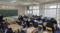 国語の時間では現在、書写に取り組んでいます。準備・片付け時間短縮のため、「水書板」という道具を使って書いています。水で書けるんですね。すごいです。