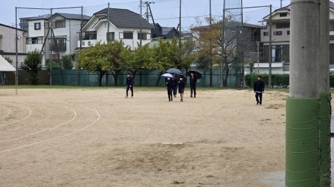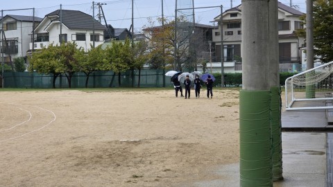本日の体育大会予行は雨天のため、明日に延期いたします。