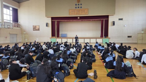 6時間目は、体育館で平和学習です。今回の大阪市内めぐり、唯一全員が訪問する施設が「ピースおおさか」・・・平和のありがたさ、学ぶことの大切さ・・・藤井先生から、話がありました。みんなの聞く姿勢が、とてもステキでした。