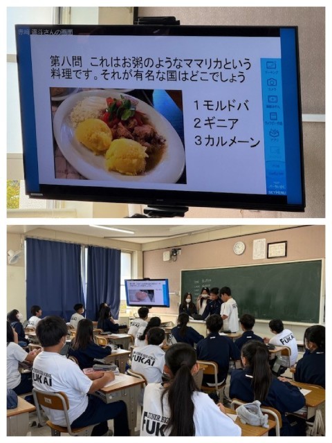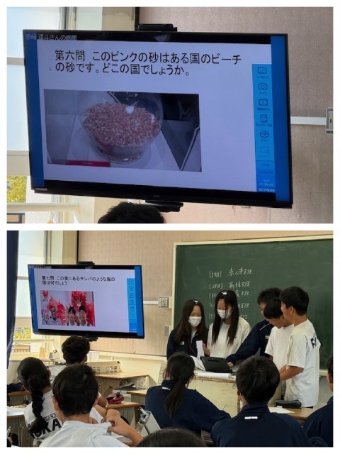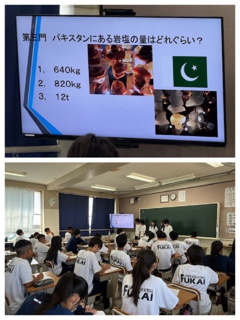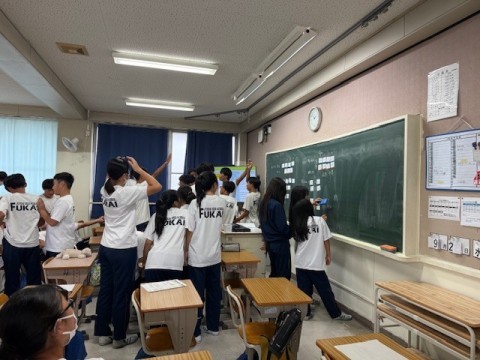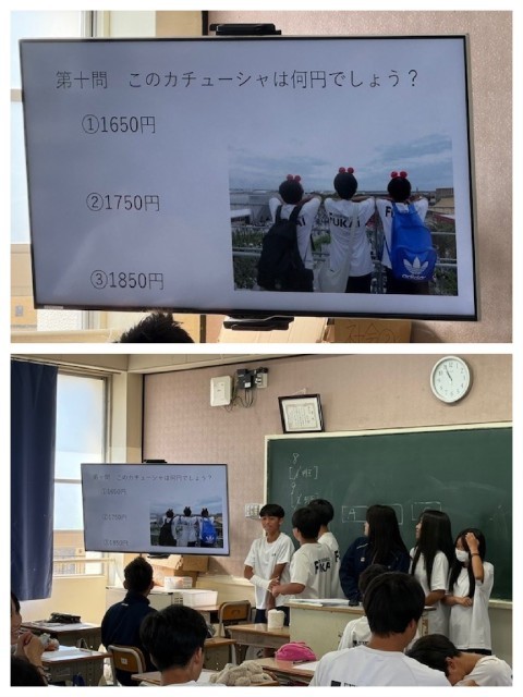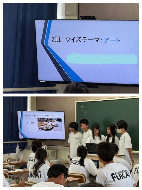 各班ごとにクイズを作り、発表して、みんなで答えを考えていました。