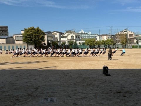 一連の流れの確認や、学年種目の綱引きの練習をしていました。