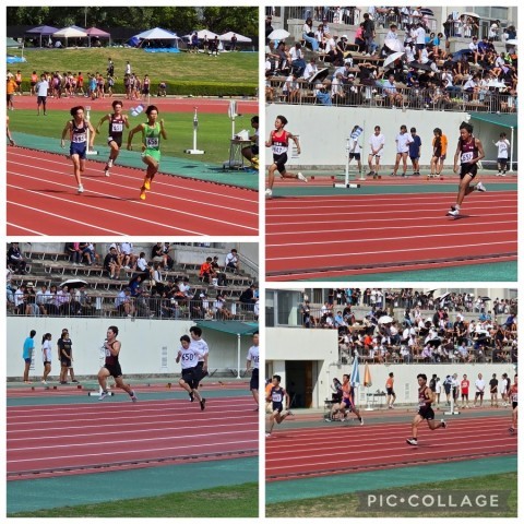 1日目は、自己ベストを7つマークすることができました。中でも共通男子リレーでは、3年生4人でバトンをつなぎ、チーム記録を1秒近く更新しました。3年生の底力を見ました。また、1年男子走高跳では6位入賞を果たし、1年生としては初めての賞状をゲットしました。夏に取り組んできたことが、実を結びつつあります。練習を地道に続ければ、結果に結びつくことがわかってきたと思います。