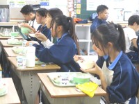 3年生1組の喫食の様子 公開日 2025/09/02 更新日 2025/09/02 3年生 2日(火)、塩ちゃんこ汁は、具材の種類が豊富で、彩りがきれいな汁物でした。玉ねぎやにんじんの甘みがスープに溶け込んでおり、優しい味に仕上がっていました。 3年生