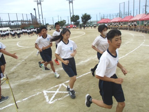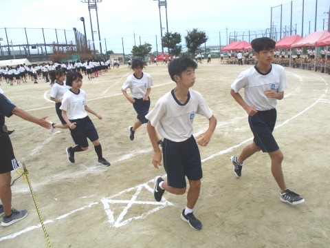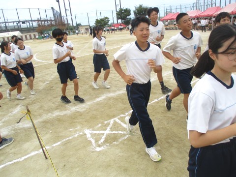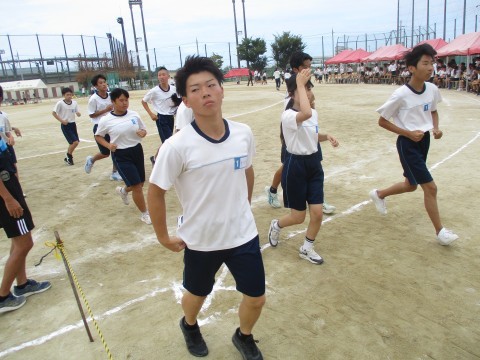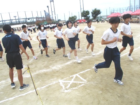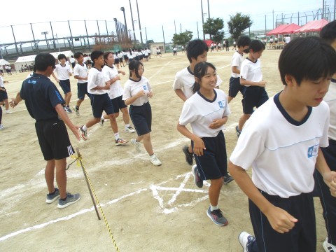 瞬間で退場 〜体育大会予行〜 公開日 2025/09/24 更新日 2025/09/24 行事関係 24日(水)、体育大会の予行を行いました。写真は、開会式後の退場の様子です。退場は、学年ごとで行われます。600名弱の生徒が、フィールド上から数分の早さで退場します! +5 行事関係