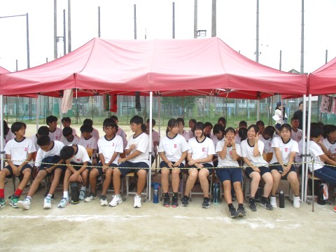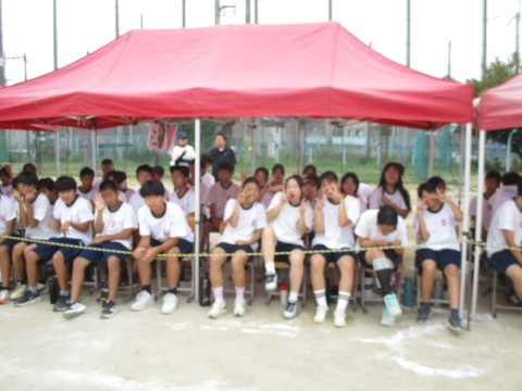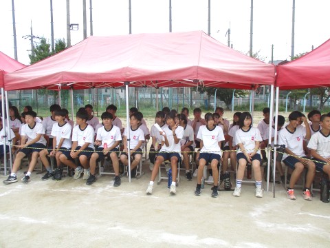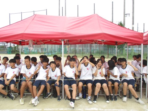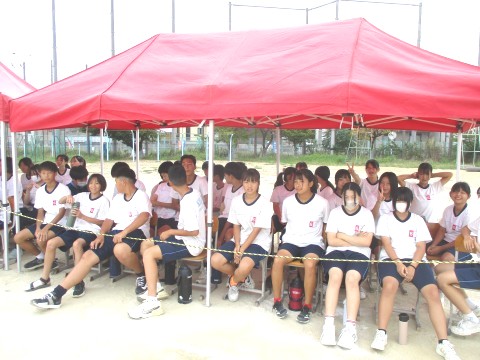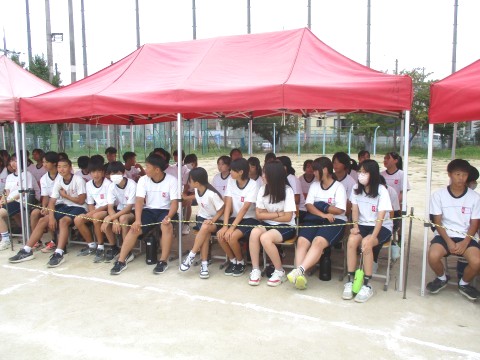 24日(水)、体育大会の予行を行いました。写真は、2年生応援席の様子です。