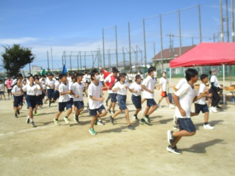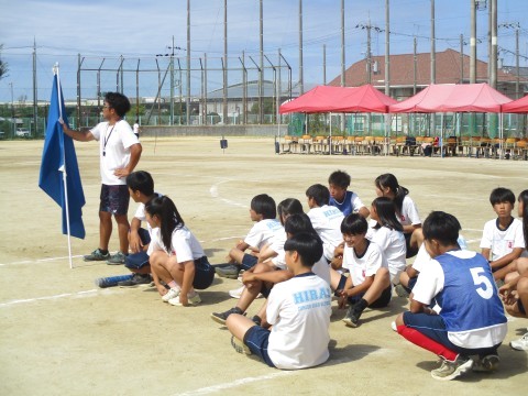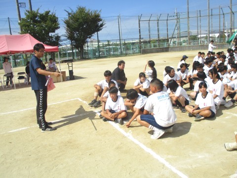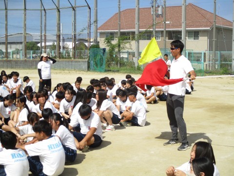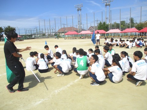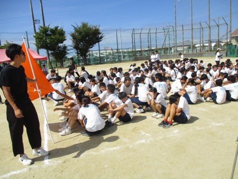 2年生学年種目 〜体育大会予行〜 公開日 2025/09/24 更新日 2025/09/24 行事関係 24日(水)、体育大会の予行を行いました。2年生の学年種目は、4人1組で棒を持って走り、コース途中のコーンを一周してゴールをめざすリレー形式の競技です。この日は、実際のレースは行わず、入退場の流れを確認しました。当日は、入場前とレース直前に、士気を高めるような秘策パフォーマンスがあるような雰囲気でした! +4 行事関係