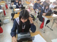 女子生徒は、ゲーム形式の練習を通して、ベースボール型スポーツのルールについて学んでいました。
