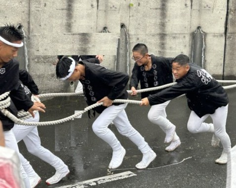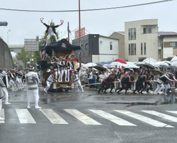 久世地区だんじり曳行~地域で貢献!~ 公開日 2025/10/06 更新日 2025/10/06 その他 先週末の4日(土)・5日(日)、久世校区だんじり祭が行われました。だんじり祭2日目のメインは、久世地区内の地車による「泉北1号線パレード」でした。あいにくの雨模様でしたが、悪天候に負けない、各町の力強い曳航が見られました。 本校生徒の多くも、各町の年番会・青年團の皆さまとともに地域の一員として参加しました。 +6 その他