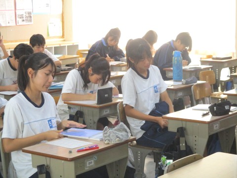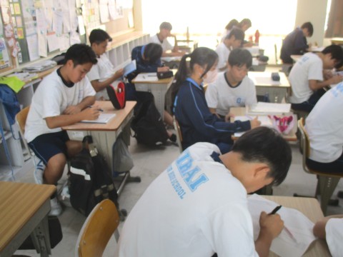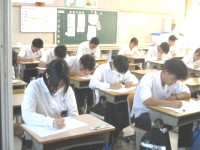 3年生5組の授業(数学)の様子 公開日 2025/10/07 更新日 2025/10/07 3年生 7日(火)、3年生5組の1時間目は、数学の授業でした。3年生の数学の授業は、週4時間の内3コマ分を1学級を2分割した少人数編成の学級で行われています。 3年生
