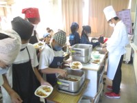 3年生3組の配膳の様子 ~Wakame Seaweed Soup~ 公開日 2025/10/17 更新日 2025/10/17 2年生 17日(金)、汁物は、「わかめスープ」でした。透きとおったスープに浮かぶわかめの緑色、にんじんのオレンジ色、コーンの黄色が映える、うま味いっぱいのスープでした。 +3 2年生