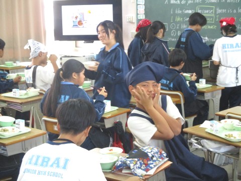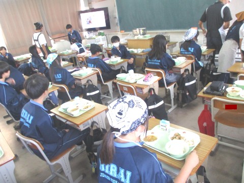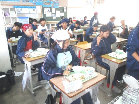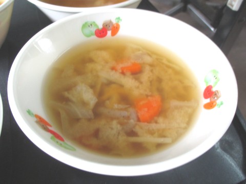 2年生1組:喫食の様子 ~主役級のスープ!~ 公開日 2025/10/24 更新日 2025/10/24 1年生 24日(金)、喫食の様子です。汁物は、主役級レベルの五目汁でした。豆腐・うすあげ・こんにゃく・キャベツ・青ねぎ・ごぼう・にんじんなどの具材がたっぷり入っており、栄養満点のみそ汁でした。 +3 1年生