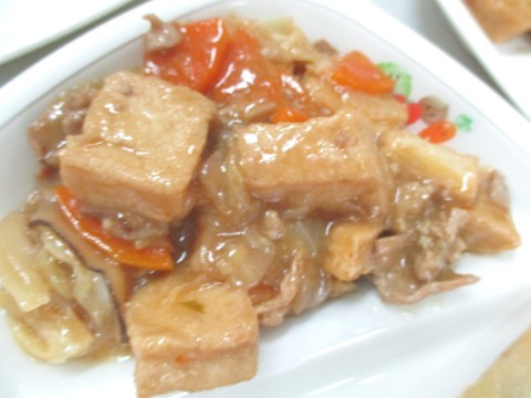 献立の主役は、「厚揚げとキャベツのみそ炒め」でした。