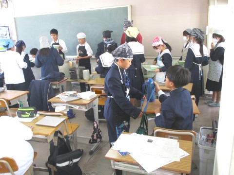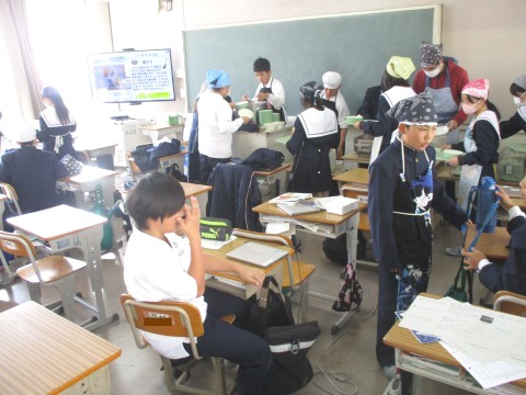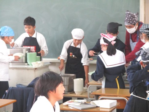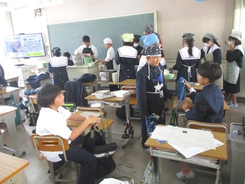 1年生4組:配膳の様子 ~ 味噌グリル ~ 公開日 2025/11/10 更新日 2025/11/10 1年生 10日(月)、配膳の様子です。主菜は、「さわらのみそ焼き」でした。白みそと赤みその濃厚な風味が、さわらの脂とベスト・マッチングでした。食缶からは白ねぎの香りとさわらの香ばしさが立ち上がり、教室中に広がっていました。 +2 1年生
