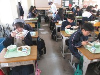 1年生2組の喫食の様子 ~さつま汁定食~ 公開日 2025/12/01 更新日 2025/12/01 1年生 1日(月)、喫食の様子です。テストをはさんで5日ぶりのお楽しみの給食時間です。この日の汁物は、「さつま汁」でした。鶏肉、大根、にんじん、さつまいも、こんにゃくなどのさまざまな食材の食感を楽しむことができました。具材がたっぷり入っており、主菜級の食べ応えでした。 +1 1年生