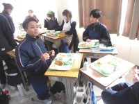 21日(水)1年生5組の喫食の様子 ~旨辛キムチ~ 公開日 2026/01/21 更新日 2026/01/21 1年生 1年生5組の喫食の様子です。主菜は、野菜たっぷりの豚キムチで、ヘルシー・プレートでした。白菜や玉ねぎから出る甘みとキムチの辛さがうまくからみ合い、野菜を苦手とする生徒でも食べやすいように調理の工夫がされており、お替りをする生徒の姿を多く見ることができました。 +4 1年生