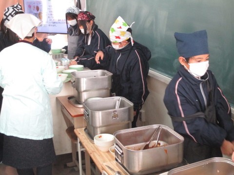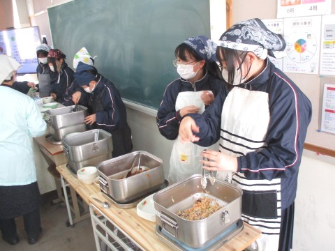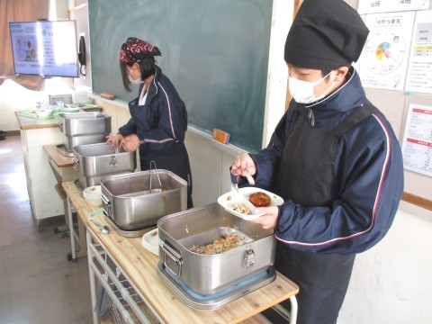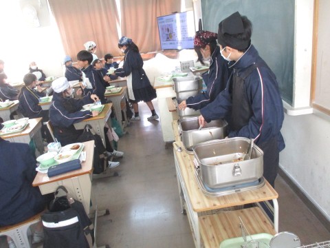 20日(火)1年生5組の配膳の様子 ~a strong sense of responsibility~ 公開日 2026/01/20 更新日 2026/01/20 1年生 1年生5組の配膳の様子です。係りの生徒は、配膳時、すべての出席している生徒にきちんと配膳されているを日々チェックしてくれています。確認後は、担任の先生に配膳終了の報告をしています。 +2 1年生