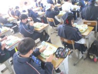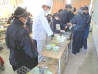 2月2日(月)1年生5組の配膳の様子 ~大豆の力~