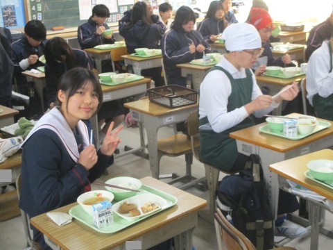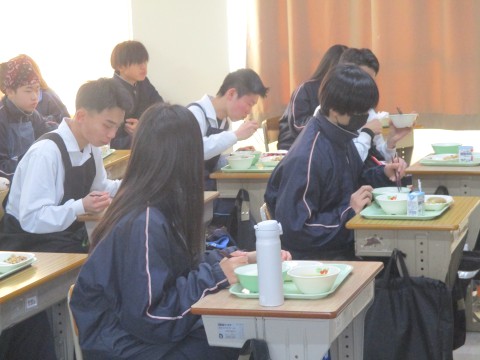 3日(火)3年生1組の喫食の様子 ~Teriyaki Hamburger Steak~ 公開日 2026/02/03 更新日 2026/02/03 3年生 3年生1組の喫食の様子です。主菜は、照り焼きハンバーグでした。甘辛いタレがふっくらとしたハンバーグに絡んでいました。タレは、しょうゆ、砂糖、みりん、料理酒が絶妙なバランスで調合されていました。ごちそうさまでした! +2 3年生